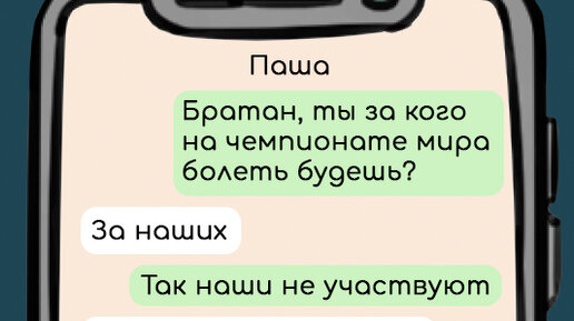 В жизни у мужчины бывает период, когда он отключается от всех забот, полностью растворяется в счастье и две недели проводит со своей любимой… футбольной командой. А вы о чем подумали? Девушки, наверняка, о медовом месяце. Простите, что вас разочарую, но я про чемпионат мира по футболу! Пока в Катаре проходит очередной праздник футбола и пива, я решил собрать подборку смешных смс-переписок с футбольными фанатами. Надеюсь, она вас повеселит. И раз уж у нас сегодня спортивная тема, предлагаю после прочтения проголосовать… ой, простите, поболеть за самую смешную шутку...