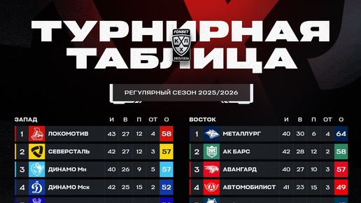 🔥🇷🇺 Турнирная таблица КХЛ