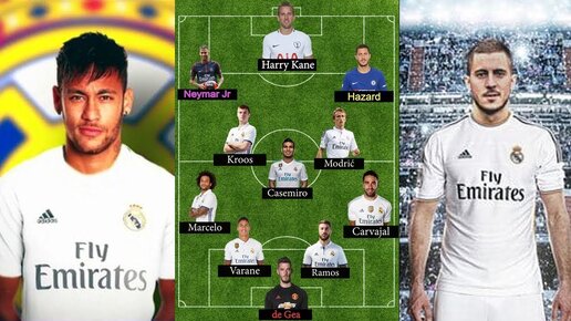 AS.com предлагает вот такой состав "Реала" на следующий сезон: Неплохо да? Аж сразу 4 новичка: помимо Де Хеа из "МЮ", который каждый сезон переходит к "Сливочным" в список вошли Салах из "Ливерпуля", Погба из того же "Юнайтеда" и Неймар сами знаете откуда. Дорого, богато: впереди ещё 5 подряд кубков Лиги Чемпионов. Правда и потратить придётся около миллиарда евро...