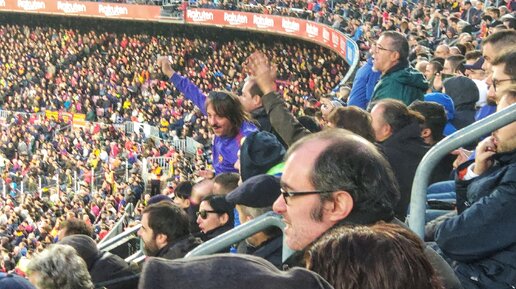 Привет! 28 октября 2018 года я побывала на стадионе "Камп Ноу" и своими глазами увидела легендарное Эль классико — одно из самых принципиальных и известных клубных футбольных противостояний в мире. На поле сошлись не только два самых известных футбольных клуба Испании: "Барса" и "Реал", но и два самых крупных города Барселона и Мадрид. Я не большой знаток футбола, но даже промозглый ветер и моросящий то и дело дождик не испортили впечатления от матча. Перед матчем болельщики устроили настоящий перфоманс! Весь стадион окрасился в цвета футбольного клуба и пел гимн своих любимцев...