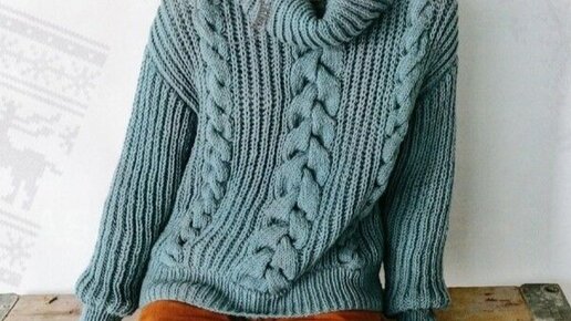 Пуловер с косами на фоне английской резинки.