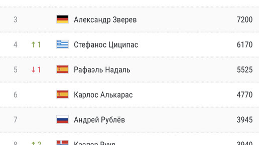 На официальном сайте ВТА появилась свежая версия женского мирового рейтинга. Рейтинг ВTA 1 (1). И.Швентек (Польша) — 10335 2 (2). О.Жабер (Тунис) — 4555 3 (3). Д.Пегула (США) — 4316 4 (4). К.Гауфф (США) — 3271 5 (5). М.Саккари (Греция) — 3121 6 (6). К.Гарсия (Франция) — 3000 7 (7)...