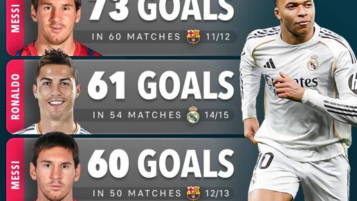 🤔 А что если Мбаппе повторит или перебьет рекорд Месси по голам в одном сезоне
