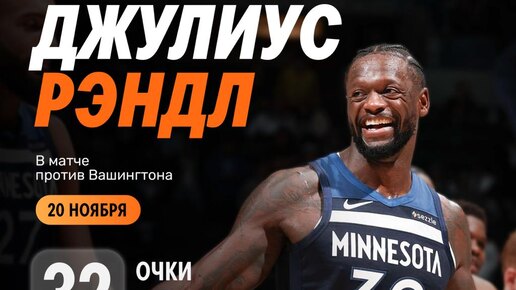 ⚡️ Джулиус Рэндл сделал разницу Форвард «Миннесоты» провёл хорошую игру против «Вашингтона» — 32 очка, 11 из 19 с игры, 10 подборов и 6 передач за 32 минуты. Рэндл был самым полезным игроком команды, и остался всего в нескольких шагах от трипл-дабла...