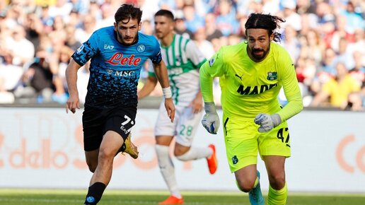«Наполи» на своем поле разгромил «Сассуоло» в матче 12-го тура чемпионата Италии по футболу. Встреча на стадионе имени Диего Марадоны завершилась со счетом 4:0. В трех голах поучаствовал экс-игрок казанского «Рубина» Хвича Кварацхелия. «Наполи» вышел вперед уже на четвертой минуте матча. Хвича Кварацхелия сделал идеальную скидку на Виктора Осимхена, который переправил мяч в ворота головой. Первый гол Осимхена в ворота «Сассуоло» — 1:0 На 19-й минуте Хвича снова отдал ассист на Осимхена. Второй гол Осимхена в ворота «Сассуоло» — 2:0 На 36-й минуте отличился сам грузин...