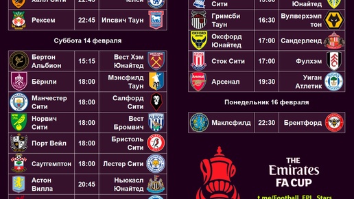 Расписание матчей Кубка Англии