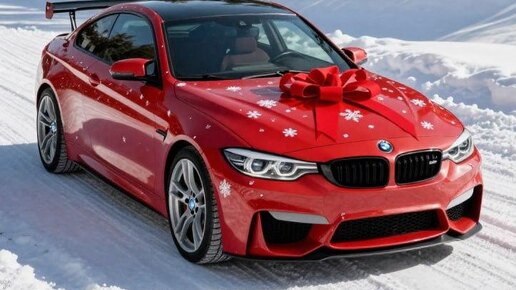 ! 🚗 Разберём, как создать праздничную автомобильную сцену с идеальной детализацией материалов и атмосферного освещения, а затем оживим её в t.me/AAGVideoBot 📝 Оптимизированный промт: A stunning BMW M4 coupe wrapped in festive red gift paper adorned with white snowflakes, tied with a large, glossy red ribbon bow across the hood, parked on a pristine snowy mountain road with deep tire tracks, surrounded by snow-laden evergreen pine trees under a bright clear blue sky, the car features a prominent...