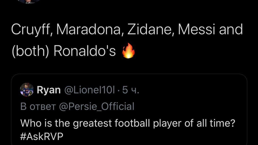 «Кройфф, Марадона, Зидан, Месси, Роналдо и Криштиану Роналду , – написал ван Перси в твиттере.