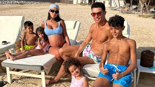 В ожидании: Криштиану Роналду с беременной Джорджиной Родригес и детьми на пляжной фотосессии в Дубае