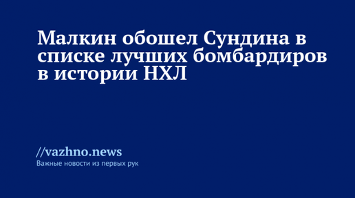 9 октября российский форвард хоккейного клуба (ХК) «Питтсбург» Евгений Малкин превзошел шведского хоккеиста Матса Сундина по количеству набранных очков в регулярных сезонах Национальной хоккейной лиги (НХЛ). В поединке с «Нью-Йорк Айлендерс» 39-летний Малкин оформил три результативные передачи, достигнув в карьере общего результата в 1351 очко. В сумме он забил 514 голов и выполнил 837 передач. В результате Малкин сместил Сундина с 30-го места в рейтинге НХЛ, у шведа было 1349 очков. На 29-й позиции...