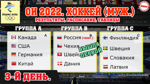 Хоккей. Олимпиада 2022. 3-й день. Результаты. Расписание. Таблица. Россия - Дания.
