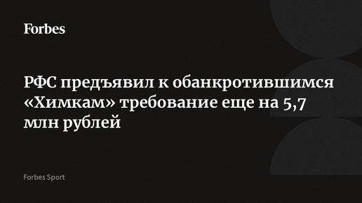 РФС предъявил к обанкротившимся «Химкам» требование еще на 5,7 млн рублей