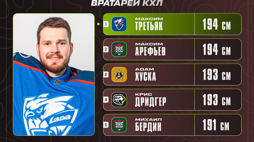 Здесь вы можете увидеть рост самых высоких и невысоких вратарей КХЛ по убыванию: