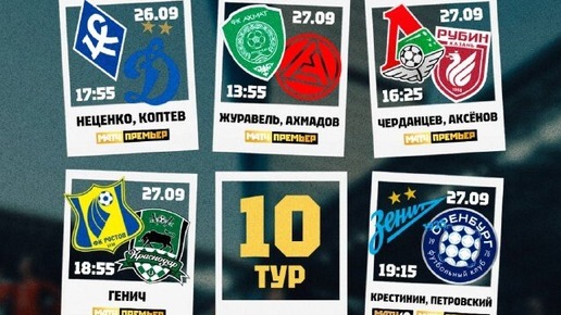 Расписание 10-го тура РПЛ 2025/2026: трансляции и комментаторы