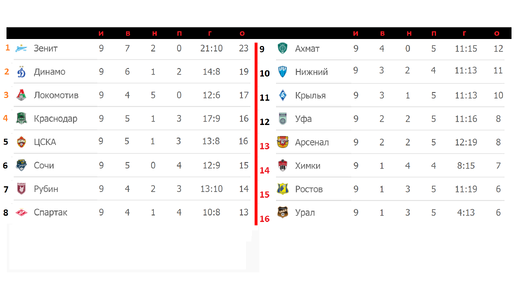 Чемпионат России по футболу (РПЛ). 9 тур. Результаты. Расписание. Таблица.