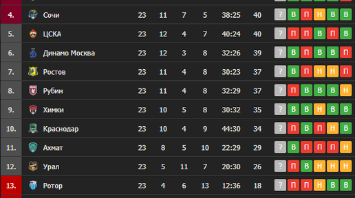 Итоговая таблица РПЛ после 23 тура, статистика всех матчей в целом. PPDA, OPPDA, DC, ODC