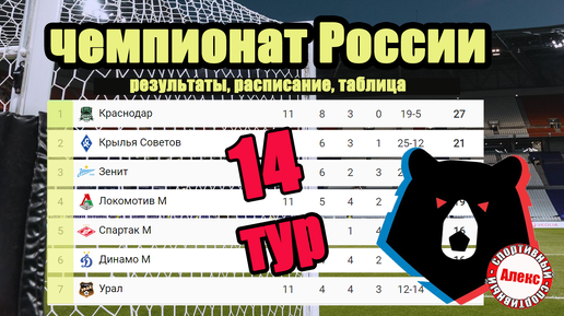 Чемпионат России (РПЛ). 14 тур. Результаты. Расписание. Таблица.