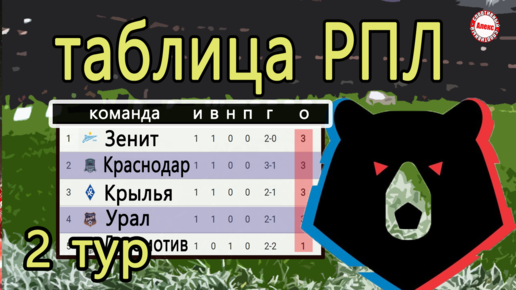 Чемпионат России по футболу (РПЛ). 2 тур. Результаты. Расписание. Таблица.