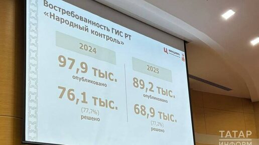 Автор: Динара Прокопьева В 2025 году в систему «Народный контроль» подали 89,2 тыс. обращений. Об этом сообщили на брифинге в Кабинете министров Татарстана. За прошлый год было проработано порядка 76% заявок – 68,9 тыс. обращений. Для сравнения: в 2024 году в системе было зафиксировано 97,9 тыс. обращений, из которых решены 76,1 тыс. «В прошлом году было опубликовано 89,2 тыс. заявок – чуть меньше, чем в 2024 году. Я считаю, это хорошая динамика, потому что вопросов становится меньше, но показатель...