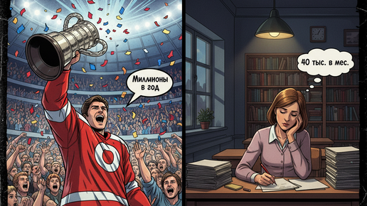 Это вопрос, который злит всех: почему человек, который учит наших детей, получает 40 000 ₽, а человек, который забивает шайбу, — 50 000 000 ₽? Мы кричим о несправедливости и виним государство, олигархов и систему. Но что, если главная причина этой дикой диспропорции — Вы и Я? Сегодня мы, как финансовые аналитики, раскроем три «неудобных закона рынка», которые объясняют эту разницу. Вы увидите, что рынок платит не за значимость труда, а за его редкость, рычаг и готовность аудитории платить. И вы, сами того не осознавая, ежедневно голосуете рублем за то, чтобы Учитель оставался бедным...