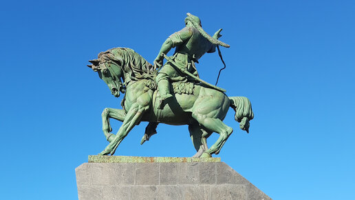 Будучи проездом в Уфе, мы не могли не посетить знаменитую его достопримечательность. Памятник Салавату Юлаеву - самая масштабная конная статуя в России, достояние Уфы. Посвящен он национальному герою Башкортостана Салавату Юлаеву. Многие знают это имя лишь по названию хоккейной команды. А ведь этот юный бунтарь 19 лет от роду участвовал в Пугачевском восстании, сам провел несколько успешных сражений, проявляя довольно свирепый нрав. Монумент отличает от других то, что при весе в 40 тонн, он имеет всего три опорные точки...