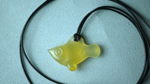 Мелкий амурский сердолик редко бывает идеального качества, пригодного для резьбы. Такой ещё нужно выбрать и отделить от массы трещиноватых или непонятной, крайне неправильной формы. Смотришь на такой и гадаешь, а что же из него можно вырезать? Поверхность как у луны, вся в бороздках и кратерах, имеются несколько глубоких ямок и одна трещина. По ней можно отрезать дефектную область, всё равно отколется в процессе работы. Без дефектных участков сразу же возникает идея кулона золотой рыбки. Осталось отсечь всё лишнее и как следует отполировать...