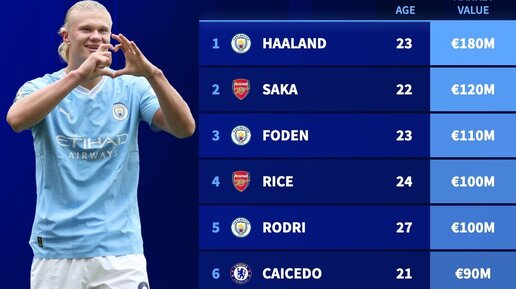 После обновление трансферной стоимости футболистов английской премьер-лиги, составленной порталом transfermarkt, список выглядит следующим образом.