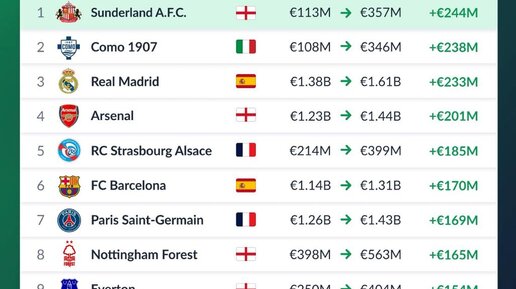 «Сандерленд» и «Комо» – самые подоражавшие клубы за 2025 год