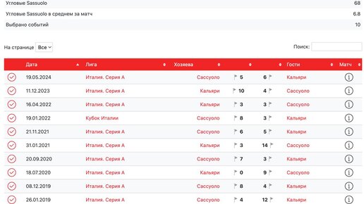 ⚽️Кальяри - Сассуоло⚽️ 📊УГЛОВЫЕ. Статистика 👉ЛИЧНЫХ ВСТРЕЧ