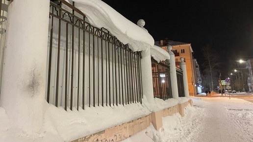 На заборе стадиона «Динамо» в областном центре появились нависающие снежные шапки. Их размеры впечатляют. Любопытно, что они нависают прямо над популярной пешеходной зоной и в любой момент могут рухнуть прямо вниз...