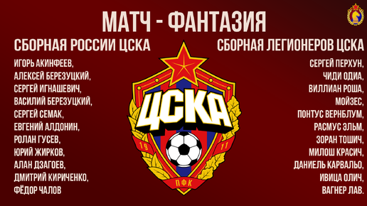 На «ВЭБ Арене» состоялся уникальный матч-фантазия: сборная ЦСКА из российских игроков против сборной легионеров клуба. Это дружественный матч – в самом прямом смысле этого слова! Составы: Игорь Акинфеев — символ клуба, человек-эпоха, главный страж ворот армейцев. Алексей и Василий Березуцкие, Сергей Игнашевич — легендарная тройка, основа обороны золотой эпохи. Сергей Семак — капитан и лидер команды середины 2000-х, универсал, способный решать исходы матчей. Евгений Алдонин — опорник, обеспечивавший баланс между обороной и атакой...