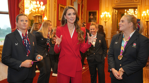 Кейт Миддлтон в алом костюме провела торжественный прием сборной по регби