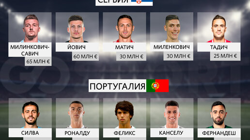 Сравнение стоимости составов сборных Сербии и Португалии