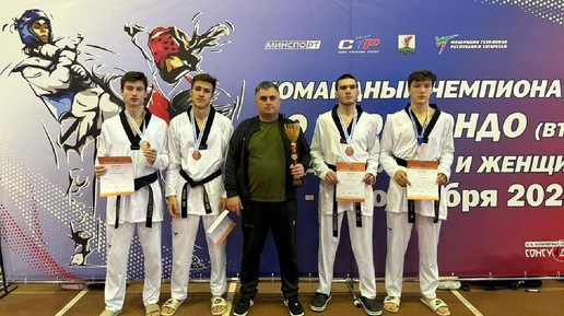 Спортсмены Подмосковья завоевали бронзу на командном чемпионате России по тхэквондо Подмосковные тхэквондисты стали бронзовыми призёрами командного чемпионата России по версии ВТФ, сообщает Министерство физической культуры и спорта Московской области. Регион в мужских командных боях представляли воспитанники Училища олимпийского резерва №1 из Краснознаменска — Кирилл Панасенков, Хайбула Курбанов, Карим Рамазанов и Рамазан Рамазанов.