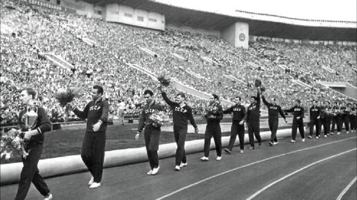 Триумфальный парад сборной СССР по футболу. Сборная СССР. Линия полузащиты в советской сборной в финале выглядела так - в центе полузащиты Нетто и Войнов, на флангах Месхи, Метревели. И это была одна из самых перспективных линий полузащиты из всех стран участниц...