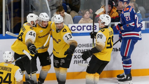 в матче чемпионата КХЛ Хоккеисты СКА не смогли продолжить победную серию в чемпионате КХЛ, уступив в Ледовом дворце череповецкой «Северстали» со счетом 2:3. Судьбу встречи решили послематчевые буллиты, в которых гости проявили больше мастерства. СКА в этом сезоне до 18 февраля не проигрывал «сталеварам». Причем выиграл оба матча на их площадке — 6:4 и 3:1. И это притом, что «Северсталь» идет в лидерах Западной конференции, уступая только ярославскому «Локомотиву». Именно с этой командой армейцы, как и другие, не хотят встречаться в первом раунде плей-офф...