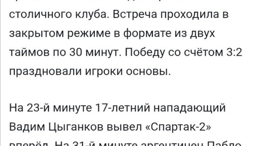 Сегодня сыгран товарищеский матч : Спартак против 🆚 Спартака 2