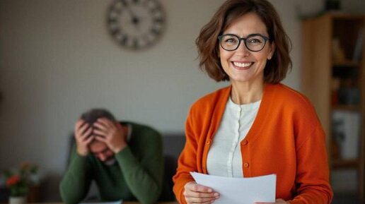 Подслушав разговор мужа, жена решила проучить его и показала бумаги, увидев которые он схватился за голову