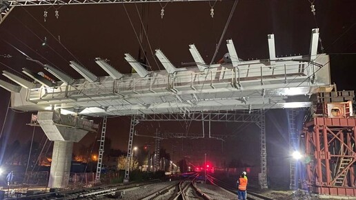 Центральную секцию путепровода начали монтировать в Апрелевке