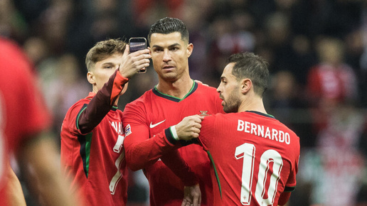 Нападающий сборной Португалии Криштиану Роналду во время матча с командой Польши остановил стюардов, чтобы сделать фото с выбежавшим на поле фанатом. Сборная Португалии в матче Лиги наций на выезде обыграла команду Польши (3:1). В составе гостей отличились Бернарду Силва и Криштиану Роналду. У поляков гол на счету Петра Зелиньского. Также защитник сборной Польши Ян Беднарек отправил мяч в свои ворота. На 63‑й минуте Криштиану Роналду был заменен, он уступил место на поле Диогу Жоте...