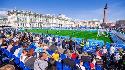 Репортаж с Дворцовой площади. 21 августа «Зенит» провел открытую тренировку в самом сердце Петербурга — на Дворцовой площади. Команда уже успела приучить жителей города к таким мероприятиям: в 2022-м все происходило в Александровском саду возле Медного всадника, спустя год футболисты переместились в Михайловский сад Русского музея, а в 2024-м — снова собрались в Александровском саду. Честно говоря, я направлялся к Зимнему дворцу с большими ожиданиями увидеть праздник — но не думал, что он получится настолько масштабным...