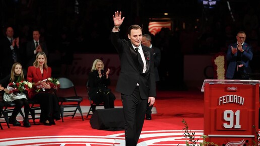 Нападающий "Вашингтон Кэпиталз" Александр Овечкин и обладатели Кубка Стэнли в составе "Детройт Ред Уингз" Владимир Константинов и Игорь Ларионов поздравили члена Зала хоккейной славы Сергея Федорова, чей номер был выведен "Детройтом" из обращения. Торжественная церемония состоялась перед матчем регулярного чемпионата между "Ред Уингз" и "Каролиной Харрикейнз" в Детройте. В рамках мероприятия под своды домашней арены "Детройта" был поднят именной стяг Федорова, а 91-й номер был навсегда закреплен за российским хоккеистом...