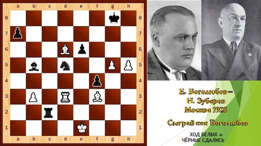 Ефим Боголюбов белыми с победой против Александра Алехина в Висбадене, 1929. Прекрасная партия-пример творчества крутых шахматистов, 1-0
