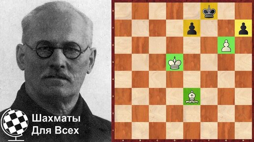 Этюд Троицкого - один из самых этюдов в шахматах. Вот начальная позиция: Казалось бы, как тут выиграть? Ведь если взять белой пешкой чёрную на h7, то чёрный король пойдёт на g7, и следующим ходом возьмёт пешку, если же пойти Сd4, защищая поле g7,то чёрная пешка возьмёт белую, а два хода подряд делать нельзя. И тем не менее решение есть. Ход 1. Сh6+ , Теперь у чёрного короля два варианта хода: на e8 или g8,надо пойти на g8, чтобы быть ближе к пешке. Ход 2. g7 если бы белые взяли чёрную пешку с шахом, то чёрный король взял бы её, а так она защищена слоном...