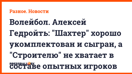Волейбол. Алексей Гедройть: "Шахтер" хорошо укомплектован и сыгран, а "Строителю" не хватает в составе опытных игроков
