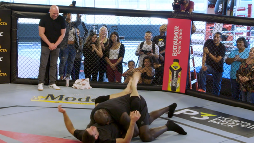 Член зала славы NBA вышел в клетку против члена зала славы UFC - экс-чемпиона промоушена в полутяжелом весе Форреста Гриффина. Действо вошло в очередной выпуск интерактивного шоу О`Нила на Facebook "Big Chicken Shaq". Импровизированным рефери этого противостояния был сам президент UFC Дана Уайт...