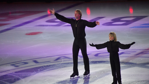 Звезды спорта, балета и шоу-бизнеса устроили феерию на ледовом шоу Двукратный олимпийский чемпион Евгений Плющенко вместе со своей женой Яной Рудковской стараются продумывать для россиян эффектные программы для своих ледовых шоу. Накануне на московской арене легендарный фигурист со своим старшим сыном – девятилетним Сашей Плющенко – показали фееричный номер, посвященный Героям России. Пока юный фигурист покорял лед под трек SHAMAN «Встанем», рядом с ним выступал известный артист балета Сергей Полунин...