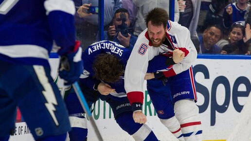Примечательное событие произошло сегодня в матче регулярки НХЛ между "Тампой-Бэй" и "Монреалем" (первые выиграли со счетом 4:0). На последних минутах второго периода схлестнулись защитник "Тампы" Михаил Сергачев и защитник "Монреаля" Ши Уэбер. В поединке верх одержал Сергачев...