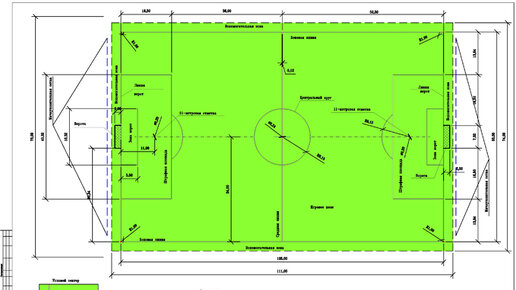 РАЗМЕТКА ФУТБОЛЬНОГО ПОЛЯ FIFA 105х68м С РАЗМЕРАМИ В DWG ДЛЯ AUTOCAD