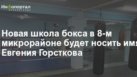 Новый арендатор помещений зеленоградской школы бокса в корпусе 813 не собирается менять профиль учреждения и обещает дать ему имя легендарного советского боксера, работавшего в Зеленограде. Подробности в публикации Инфопортала...